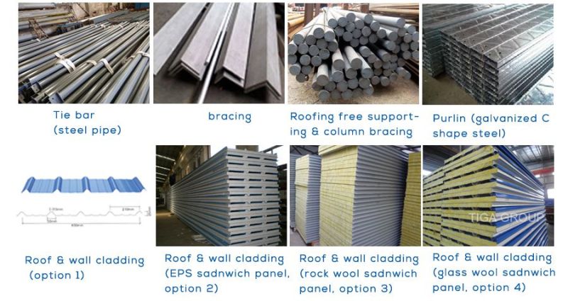 Les constructions d'entrepôt de structure métallique est très employée couramment. Le cadre global de constructions en acier est fait en divers des panneaux des poutres en double T, des C-faisceaux et d'ENV de composé