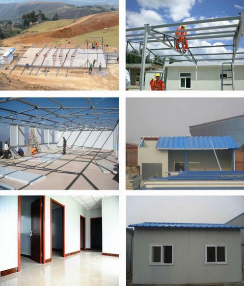 La maison préfabriquée peut être employée comme logement temporaire sur le chantier de construction ou n'importe quelle place, telle que le bureau, salle de réunion, dortoir, le centre d'exposition, faire des emplettes et ainsi de suite, qui a le modèle scientifique et humanisé, apparence, favorable à l'environnement attrayants, résistance et super-weatherability.