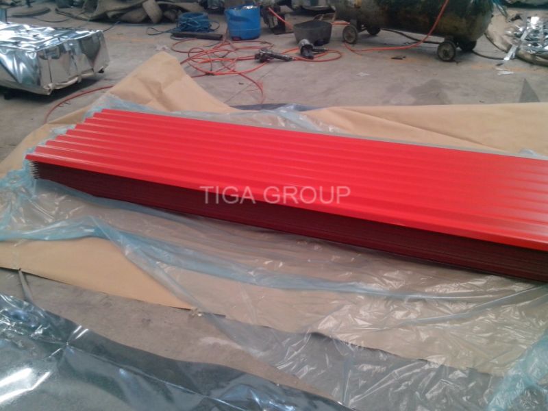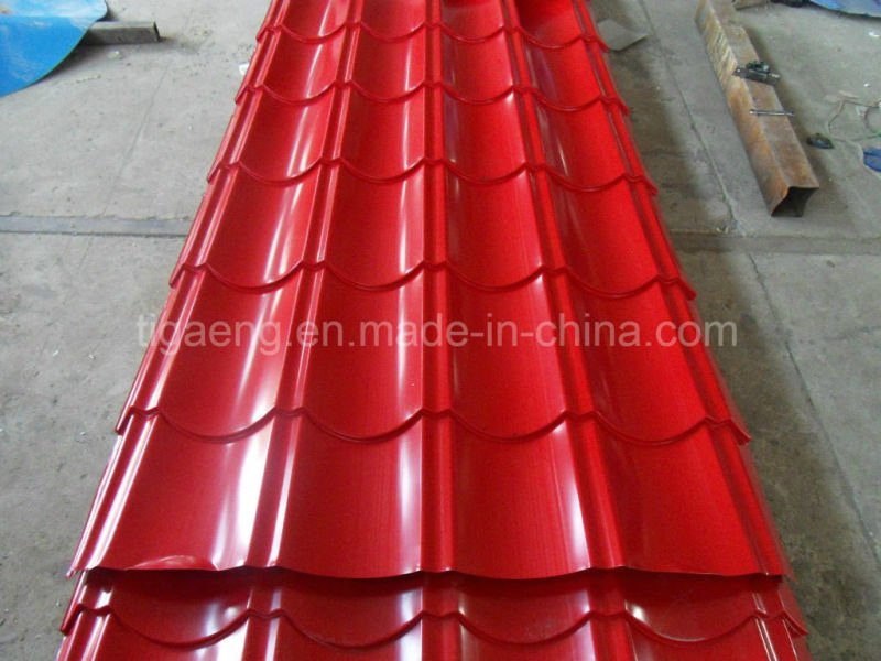 Des feuilles de toit enduites par couleur sont faites de bobines de ppgi ou le ppgl enroule par le laminage à froid formant la machine, elles peut être appuyé dans différents types, tels qu'ondulé, trapézoïdal, glacés, etc.
