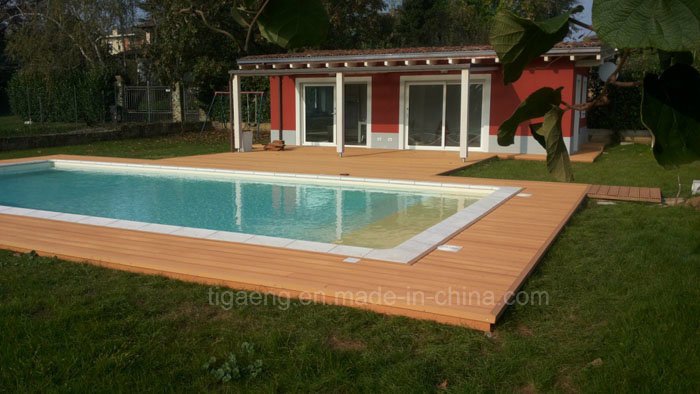 Plancher de WPC pour la piscine est un type neuf decking fait à partir de la matière composite en plastique en bois. pour les matières premières sont la fibre en bois de rebut et le PVC réutilisé, ainsi c'est un matériau amical de bon eco. Les ressembler de wpc au bois mais à la performance est bien plus supérieur que le bois car il est avec une densité, l'eau et des termites et délabre résistant. En outre, elle pourrait être facilement coupée, foret, vissé